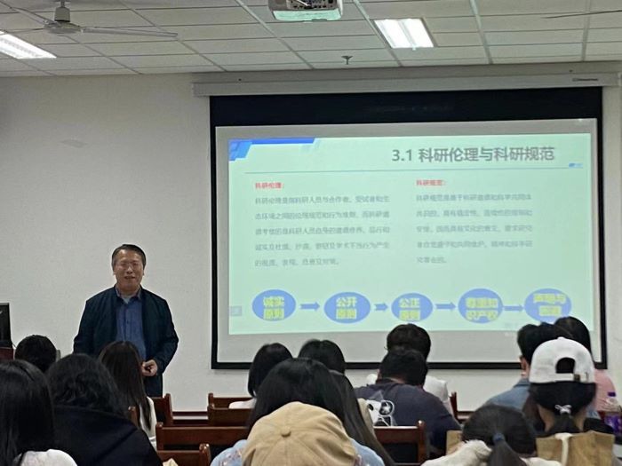 司继伟教授在讲座中分享了学术研究中的科学道德与学风建设的相关知识。首先,司继伟教授从国际国内的学术造假事件谈起,从全球所面临的科学道德和学风建设问题切入,强调加强科学道德与学风建设的必要性。此后,司继伟教授结合具体案例,向师生们详细地解读何种行为为“科研不端行为”和“科研不当行为”,进而介绍了科学研究中科研工作者必须遵守的科研伦理与科研规范。司继伟教授指出,作为一名研究者,需要具备底线思维,避免在研究中发生科学伦理问题。同时,针对如何恪守学术道德、养成良好学风,司继伟教授提出了诚信品行等五点期望,并向我院老师们和同学们分享了人民教育家陶行知先生的“千教万教教人求真,千学万学学做真人”,指出科研工作者在做研究时应持有并坚定这一信念。