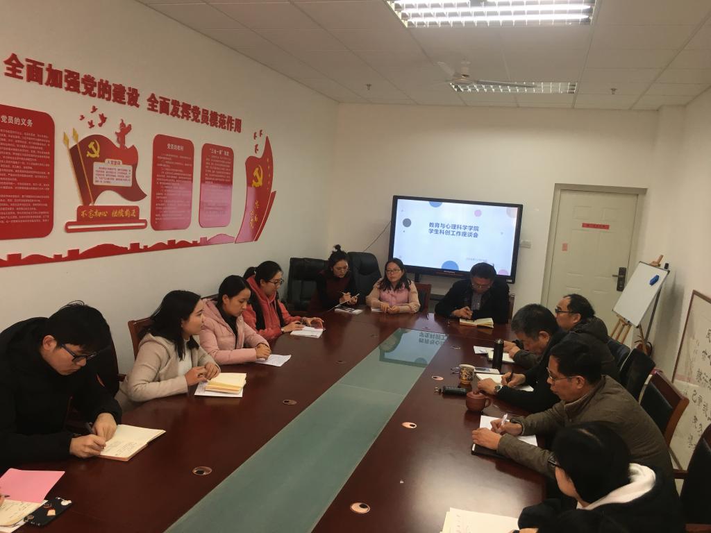 为了总结教育与心理科学学院“Abe视障儿童网络资源中心”团队获得全国大学生创业大赛金奖的经验,并与参加2019年挑战杯的团队分享收获、心得,在学院团委组织下,2018年12月26日上午11时,教育与心理科学学院在特教大楼A315会议室召开了学生科创工作座谈会,学院书记王希普,院长杨昭宁,副书记、副院长季竹君,副院长王本法,学办主任卓华丽,团委书记范雅文,辅导员魏文静、刘如喜,Abe团队成员与2019年挑战杯团队成员参加了座谈会。