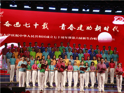 为了庆祝新中国成立七十周年,培养同学们爱国爱校的意识,表达青年学子对祖国和母校的忠诚与热爱,9月27日晚,教育与心理科学学院于大礼堂参加了济南大学新生合唱节比赛。其中,教育与心理科学学院党委副书记、副院长卢琦,团委书记范雅文老师和19级辅导员刘如喜参加了由济南大学学工合唱团,并演唱了济大校歌《你我同行》。