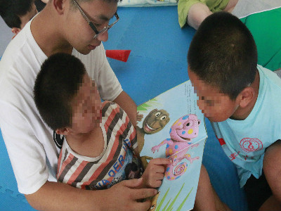 上午八点,济南大学教育与心理科学学院“月白澹芙蓉,倾情暖星语”实践团准备好书籍,等待孩子们的到来。八点半,星语培智中心的负责人代表全体师生接受了实践团的书籍馈赠,并向实践团表示了真挚的感谢之情。等孩子们上完一天的基本课程,成员与孩子们坐在一起,与他们一起阅读童话故事《变色龙》、《了不起的狐狸爸爸》等。孩子们对书籍的内容抱有极大的兴趣,成员们声情并茂,为孩子们阅读书上的内容。面对孩子们的问题,他们耐心解答,用孩子们能接受的语言去表达。活动最后,成员代表进行了“阅读经典书籍”宣讲活动,告诉孩子们阅读不仅可以了解外面的世界,也可以从中参透许多的道理、规矩。希望在未来的日子里,孩子们可以保持对书籍的兴趣,对阅读的热爱。
