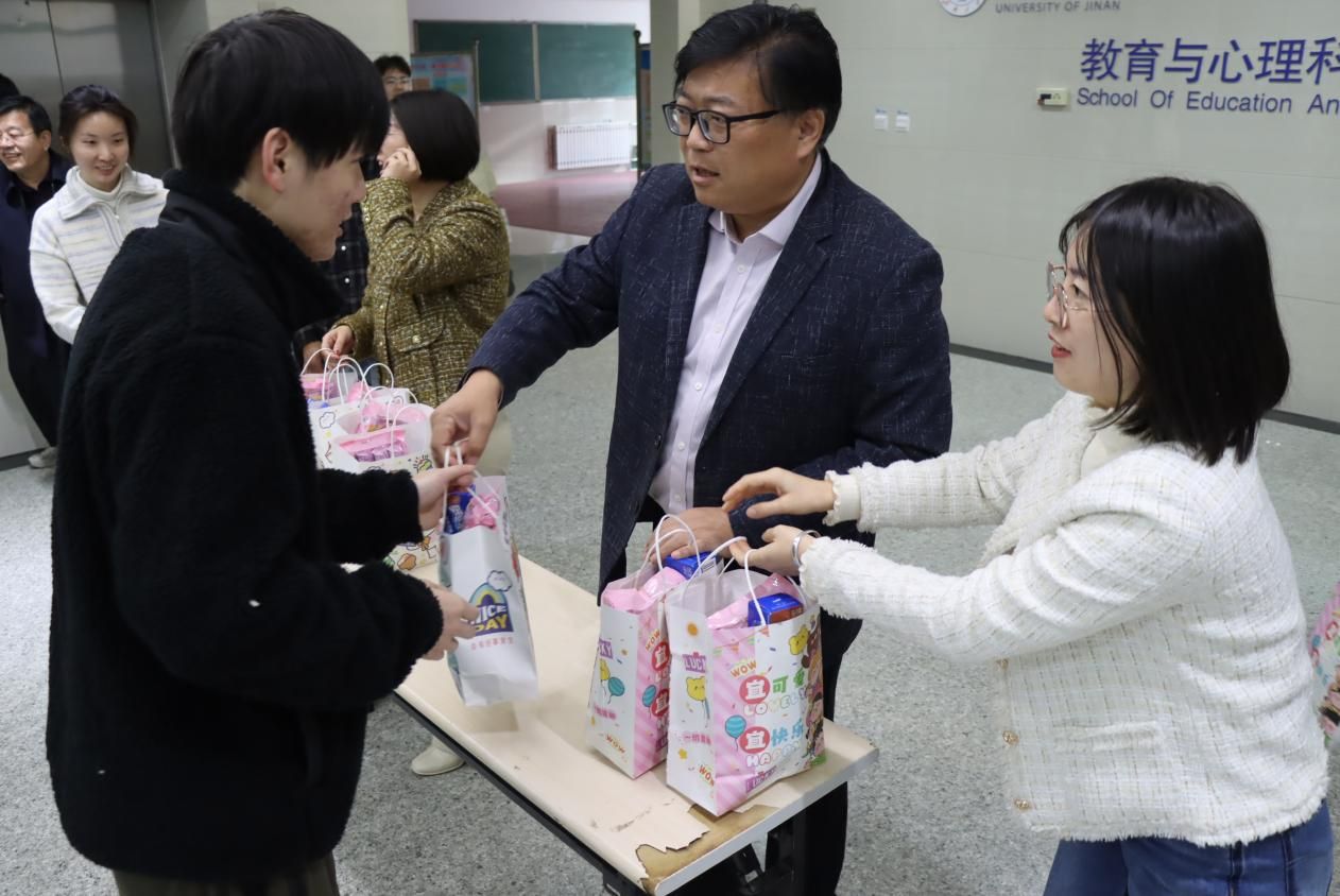 为鼓舞教心学子的考研士气,缓解考研压力,帮助他们以最佳状态迎接考研的最后冲刺,12月3日,学院在特教楼大厅举办了考研慰问活动,为备战考研的学子送上暖心礼包。学院党委书记季竹君、副院长李开云及学办全体老师参加了慰问活动。