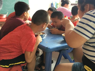 为丰富特殊儿童与实践团队员的互动形式,营造亲和氛围,7月19日中午,济南大学教育与心理科学学院“情牵星语共成长”社会实践团的队员们于阳谷县星语培智学校共同制作了一顿爱心午餐,并与特殊儿童们一起吃爱心午餐。
