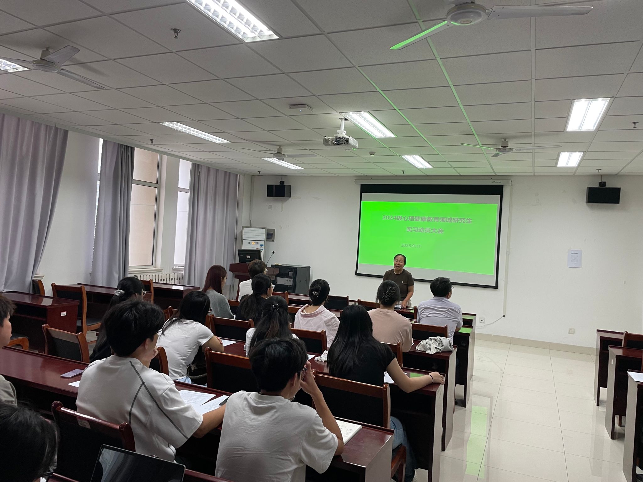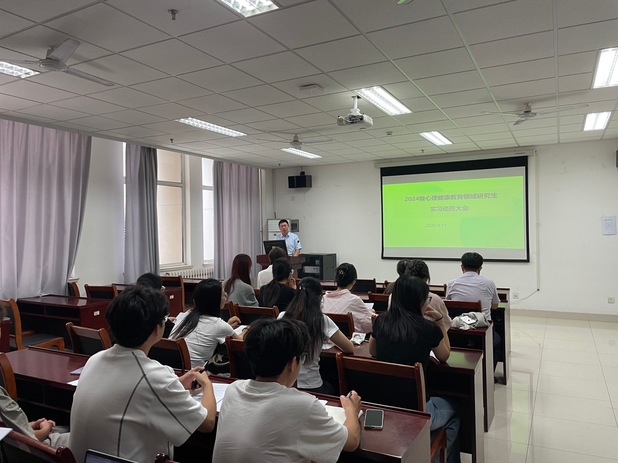 为引导教育硕士专业学位研究生做好实习准备,保障教育实习工作的顺利开展,2025年9月11日,教育与心理科学学院召开了2024级心理健康教育专业学位研究生实习动员大会。本次会议由学院副院长杨鹏主持,教育硕士教育中心主任、心理健康教育专硕负责人魏淑华,教育实习指导教师,2023级研究生代表,2024级心理健康教育全日制专业学位研究生等参加会议。