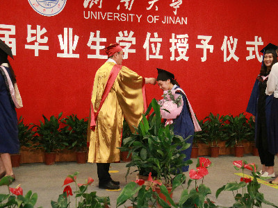 离歌声起,青春未央。6月28日清晨伴随着淅淅沥沥的小雨,济南大学举行2019届学生毕业典礼隆重举办。下午5点半,学校在第一学术报告厅举办了2019届毕业生学位授予仪式教育与心理科学学院专场。学院党委书记王希普,院长杨昭宁,党委副书记、副院长季竹君,副院长王本法、陈功香、张婷,心理系系主任乔福强,特教系系主任宿淑华,教育系系主任谢娟,学办主任卓华丽,院团委书记范雅文,辅导员魏文静、刘如喜,学院2019届全体本科、硕士毕业生及部分教师代表参加了典礼
