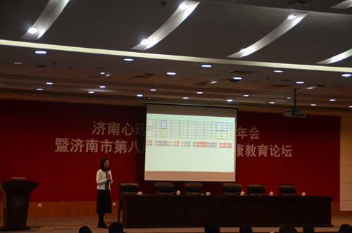 开幕式后,济南心理学会副秘书长、济南大学教育与心理科学学院副教授魏淑华博士作了题为《学业落后学生的心理原因分析及其转化策略》的大会主题报告,从“什么是学业落后学生”、“是什么导致了学生的学业落后”和“怎么帮助学生提高学业成绩”三部分展开详细介绍。在学业落后的影响因素方面,首先从经验分析角度,解释了导致学生学业落后的个体、家庭、学校、同伴、外部环境等因素,然后从学理分析角度介绍了心理学研究领域中对此问题的研究现状与结果。在学业落后学生的转化策略方面,认为从教师角度来说,可以激发学生的内部学习动机,培养学生的成长性思维,增加与强化学生的成功体验从而提高其学业自我效能感,加强班级建设从而改善同伴关系,增加与学生的互动从而建立亲密的师生关系等。从学生角度,需要进行注意力水平训练、培养良好学习习惯、提高课堂学习效率等。为如何帮助学业落后学生提高学习成绩,提出了切实可行的策略和措施。