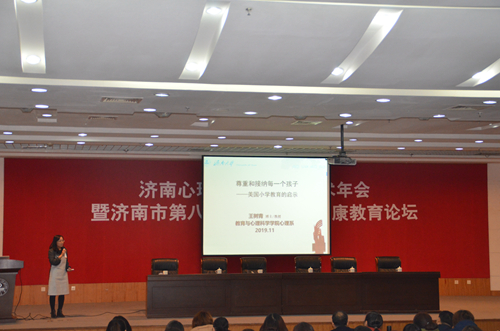 11月30日上午,由济南心理学会、济南市科学技术协会主办,济南大学教育心理科学学院承办的济南心理学会2019年学术年会暨济南市第八届中小学心理健康教育论坛在济南大学第一学术报告厅召开。本次会议主题为“学业落后学生的心理帮扶”。济南心理学会理事、会员、济南各地市的中小学教师、济南大学教育与心理科学学院师生共计300余人参加会议。