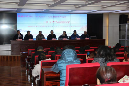12月7日上午,由中共济南市委宣传部、济南市精神文明建设委员会办公室与济南市教育局联合主办,由济南大学教育与心理科学学院和乐天社区、乐天小学联合承办的2019年济南市“阳光成长”之“让社区成为温暖的家——乐天社区未成年人思想道德建设工作座谈会暨家庭教育报告会”在长清区乐天小学举行。活动开幕式由长清区乐天小学校长张庆跃主持。济南大学教育与心理科学学院王本法教授、郭峰教授、办公室张宝华主任、心理健康教育领域的硕士研究生张瑶、高天歌以及乐天小学的教师和家长共计120余人参加了此次活动。
