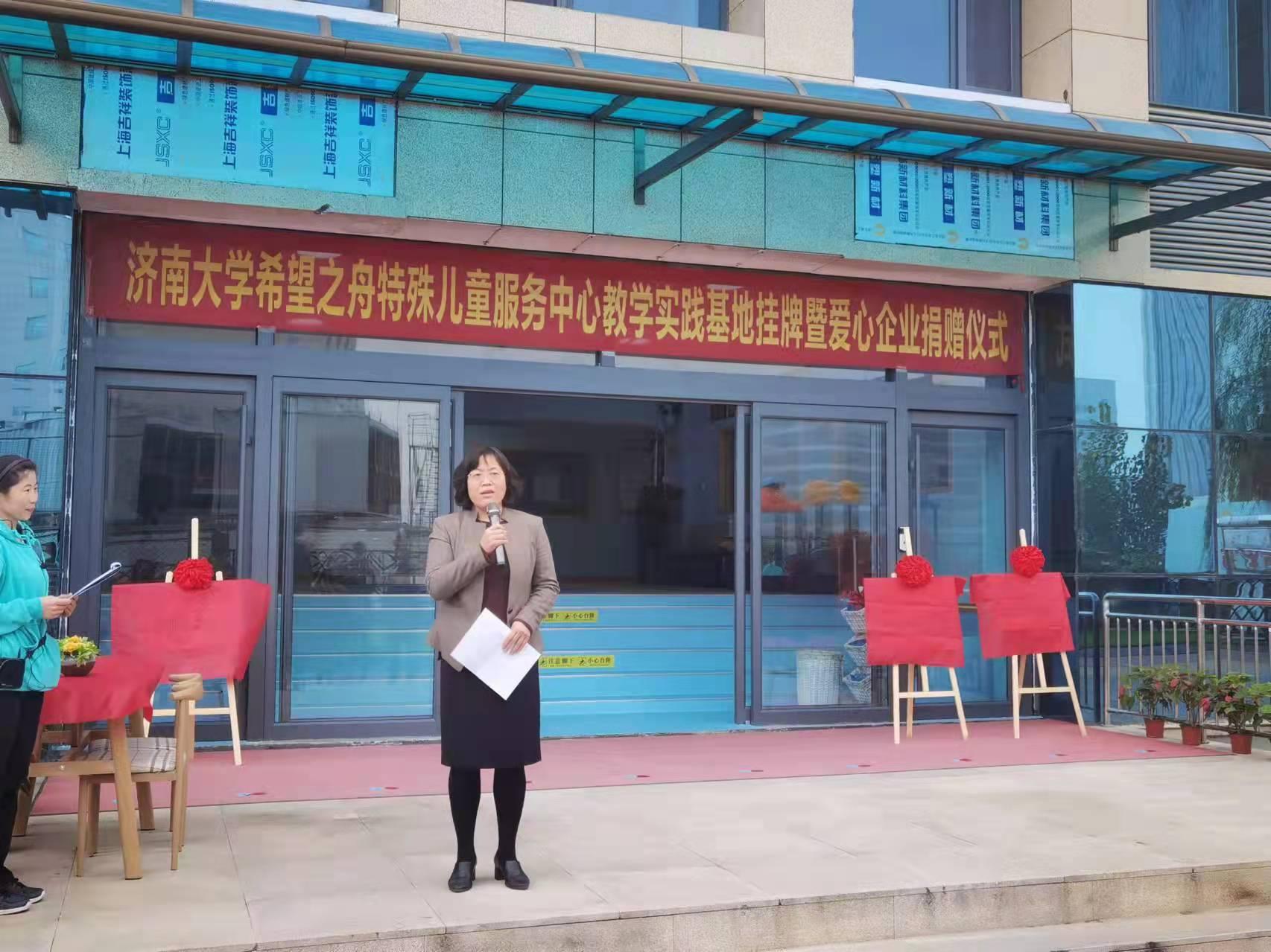 陈功香介绍了济南大学和学院的发展情况。陈功香指出,作为全省唯一具有特殊教育本科专业和硕士研究生点的高校,济南大学一直致力于特殊儿童康复教育前沿理论的研究和专业康复教师队伍的培养,为特殊儿童教育事业输送了大量人才。此次教学实践基地的设立、长期战略合作关系的建立,可以实现资源共享、优势互补。