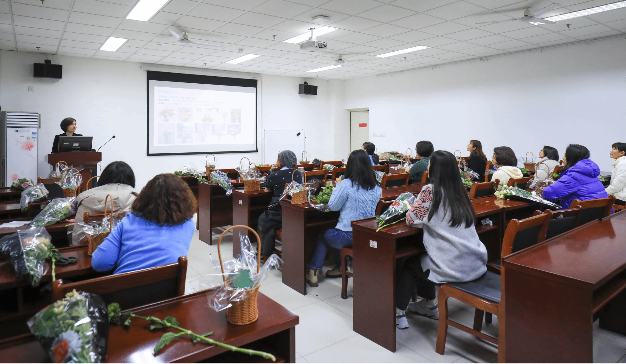 学院邀请了济南市花艺设计师郝俊美为大家讲解了插花艺术的基本知识,并现场指导大家制作插花作品,参与活动的老师了解插花技巧的同时放松了心灵,在紧张的工作中领会了另一种修炼心灵的方式。