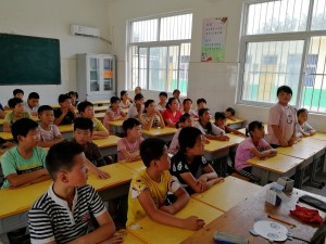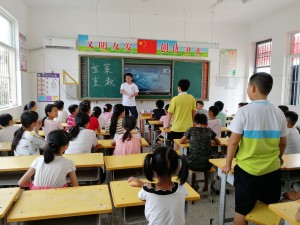 7月17日,教育与心理科学学院“囤温情,伴你行——助力第一书记”社会实践团在聊城市莘县古城镇大屯村小学开展宣策活动,为孩子们介绍了国家的方针政策和巨大变化,并就《厉害了我的国》等影片的观看作了交流。
