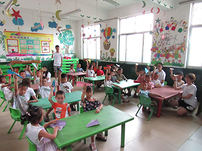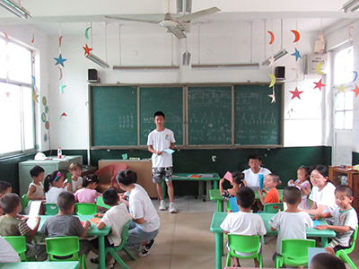骄阳似火,蝉鸣震野。7月15日午后,进行了短暂的休息后,教育与心理科学学院的志愿者们再次进入土安小学教室的大门,向大班的小朋友们进行绘画与手工课堂的授教。