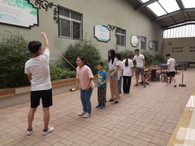 为激发青少年儿童个人潜能,培养乐观的心态和坚强的意志,提高沟通交流的主动性和技巧性,7月15日下午,教育与心理科学学院“松柏之茂,携手并肩”社会实践团来到鲁贤社区,与社区里的青少年儿童一起进行体育运动。