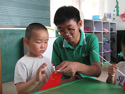 再次见到“老师们”,小朋友们兴奋地向志愿者分享起回家后的所见所闻,叽叽喳喳的声音瞬间将教室填满。平复小朋友们的激动心情后,志愿者们将今天教授的歌曲名称写在了黑板上:《虫儿飞》和《让我们荡起双桨》两首童谣。课程开始后一度遇到了很多困难,比如小朋友们还没系统地学习汉语拼音,对汉字认识甚少、有些小朋友害羞不敢唱等问题。针对出现的问题,志愿者们对每桌一句一句地教唱,采取合唱的方式,逐渐让小朋友们变得开朗,歌唱的声音也在小愈发洪亮。合唱两首歌曲完毕,小朋友们又自发唱起了之前学过的歌曲:《摆乌龙》、《小燕子》、《好爸爸好妈妈》……稚气的声音在小教室中久久回荡,小朋友们空灵的歌声在空旷的校园中纵情驰骋。