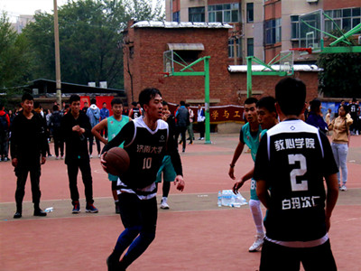 进入后半场,赛事愈加激烈,我院学子士气不减,奋起直追,小小的篮球蕴藏着巨大的爆发力,每一次进球,都凝聚了队员们的心血。在我院观众饱含热情的呐喊声中,隐约可见比分在逐渐拉近,倒计时开始,我院学子也不曾乱了手脚,再一次夺得了篮球的掌控权……下午五时,本场篮球赛在一声哨响中结束,以我方队员惜败告终。