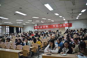 林凡同学上台进行了更细致的补充。她分别从专业课与非专业课向19级新生进行讲解,强调了背诵对于专业课的重要意义以及老师重点强调的内容和习题资料对于考试的帮助。在互助活动的最后,19级新生和学姐们进行了问答式的交流,例如,如何分配学习和学生会工作的时间等,学姐也根据自己的经验一一进行解答。通过这种方式,同学们对学姐们的讲解理解得更加深刻。