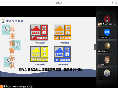 在宣讲会上,主持人首先进行了抗洪救灾知识的介绍,为同学们介绍了抗洪救灾中常用方法,并强调了抗洪工作中做好洪涝开始前监测工作的重要性;随后主持人通过介绍抗洪救灾中一线人员的优秀事迹对抗洪救灾精神做出总结并鼓励同学们学习、发扬抗洪救灾精神,在日常生活中积极地参与到抗洪救灾工作之中;紧接着,举办此次活动的志愿者们在群里积极解答同学们提出的相关问题,并且调动大家积极参与抗洪工作的积极性;最后,主持人做总结发言,会议圆满结束。