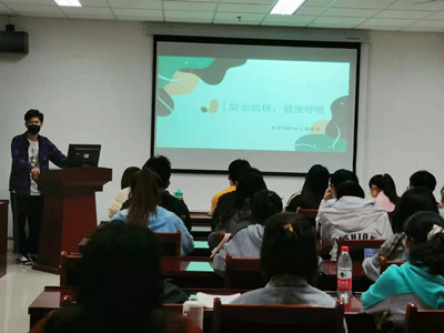 活动前期,教育与心理科学学院心动泉城心理服务中心,心泉青年志愿者协会和院心理协会的志愿者们通过微博、公众号对“防治结核,健康呼吸”进行宣传,组织宣讲志愿者观看相关视频进行学习,为此次宣讲活动做了充足的准备。宣讲过程中,志愿者通过PPT向同学们介绍了结核病的常见症状,例如:低烧、疲乏、消瘦等,强调了在通风不良的集体生活中的学生是结核病的易感人群。此外志愿者们以播放有关防治结核的公益广告的形式,让同学们更加直观的了解结核病的传播过程及传播方式。活动现场气氛活跃,志愿者适时与同学们进行互动,使同学们更好地认识结核病的危害并加以防范。最后,志愿者提出关于防治结核的几点建议,即“要做好人群密集场所通风和环境卫生、保持良好的作息习惯、加强体育锻炼、养成良好的卫生习惯”等相关内容。同时志愿者也向同学们提出了“如发现与结核病人有密切接触,需及时配合专业机构进行检查”的要求。