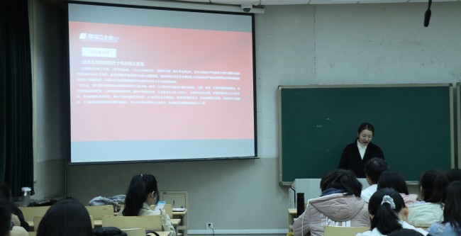 在首场宣讲活动中,心理1902班团支部书记许雅文将党的二十大报告作为基本教科书,细致解读重要论述,启发学生深刻领悟党的二十大精神的真理伟力和实践伟力。心理2004班团支部书记陈晓茹讲述了何晓艺、邰慧、郝丽影等党的二十大代表的先进事迹,号召我院学子向典型模范学习,在新征程上踔厉奋发、勇毅前行,在全面建设社会主义现代化国家的火热实践中贡献青春力量。在后续系列宣讲中,宣讲人结合实际,各有侧重,阐述了中国式现代化、环境保护、科教兴国战略、脱贫攻坚取得的历史性成就等内容。他们用鲜活案例讲故事,用实际成效讲道理,让宣讲更接地气,增强了宣讲的说服力,充分调动起学院学生学习宣传贯彻党的二十大精神的积极性和主动性。