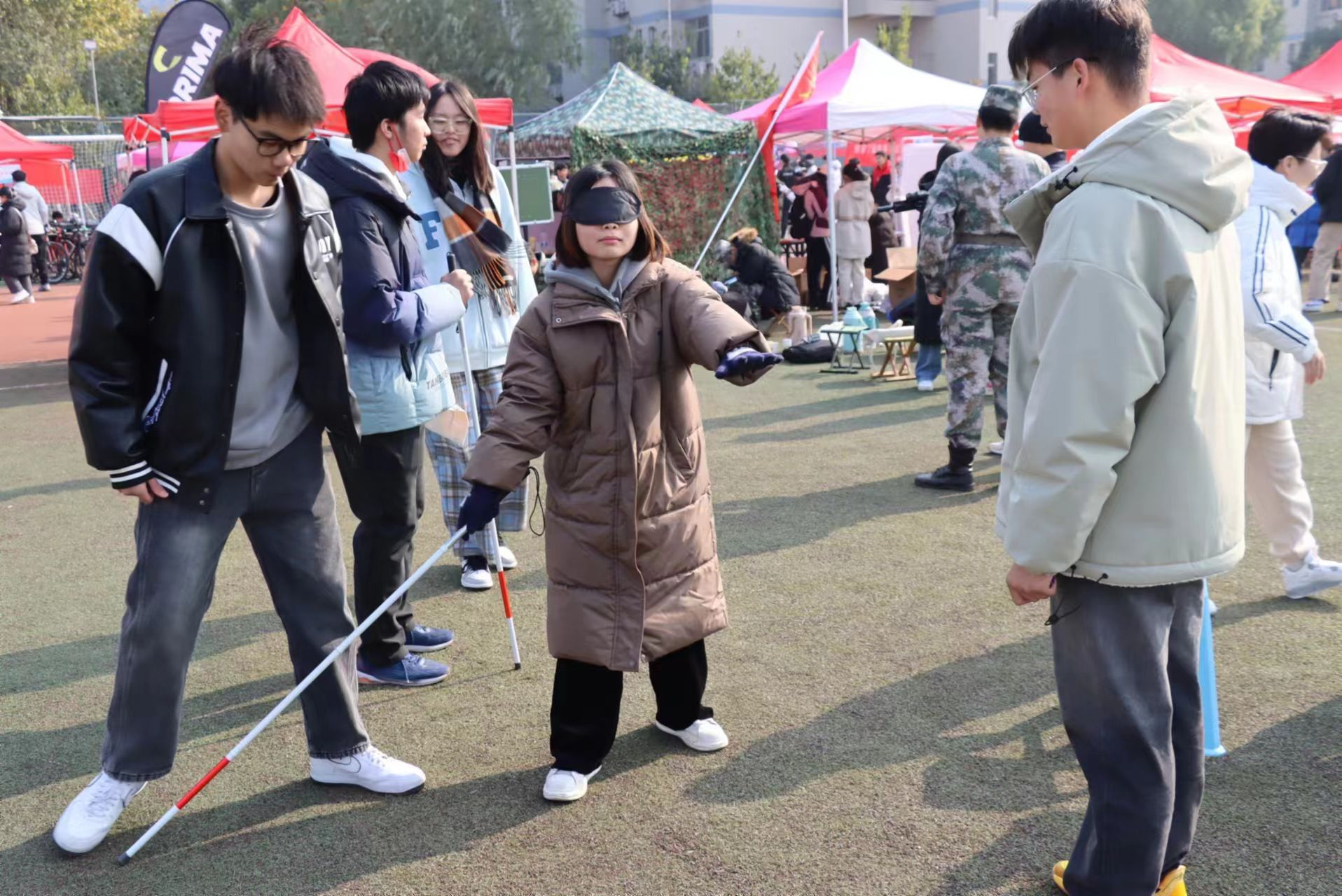 活动主要以引导参与同学使用盲杖,体验作为盲人的行动方式与学习简单手语为主。活动中,我院社团成员认真引导,耐心解答参与同学疑问,积极宣传社团主要活动内容,传达“以志愿服务为主要活动形式,为他人与社会提供力所能及的帮助与关爱”主体理念,树立了良好的组织风貌和社团形象。参与体验后,同学们纷纷表示感受到本社团的特色内涵与独特风采,我院社团纳新人数不断增加。