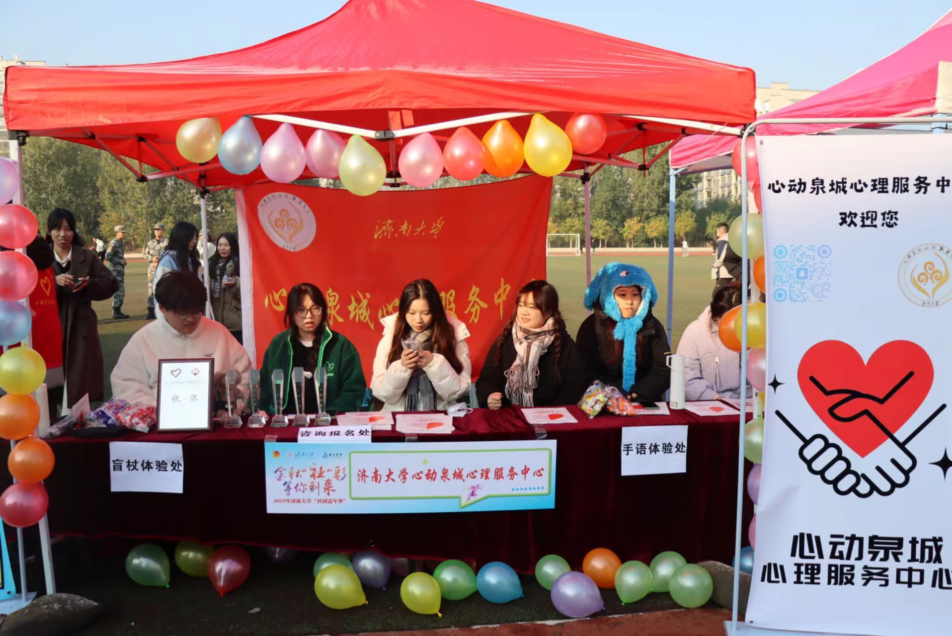 为丰富学生校园课余文化生活,营造积极向上、充满活力的校园文化氛围,引导学生社团规范化建设,11月12日,教育与心理科学学院“心动泉城”心理服务中心于南苑操场参与济南大学社团嘉年华活动。